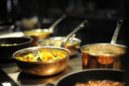 Indisk kylling med ris og linser og hjemmelavet blommechutney.